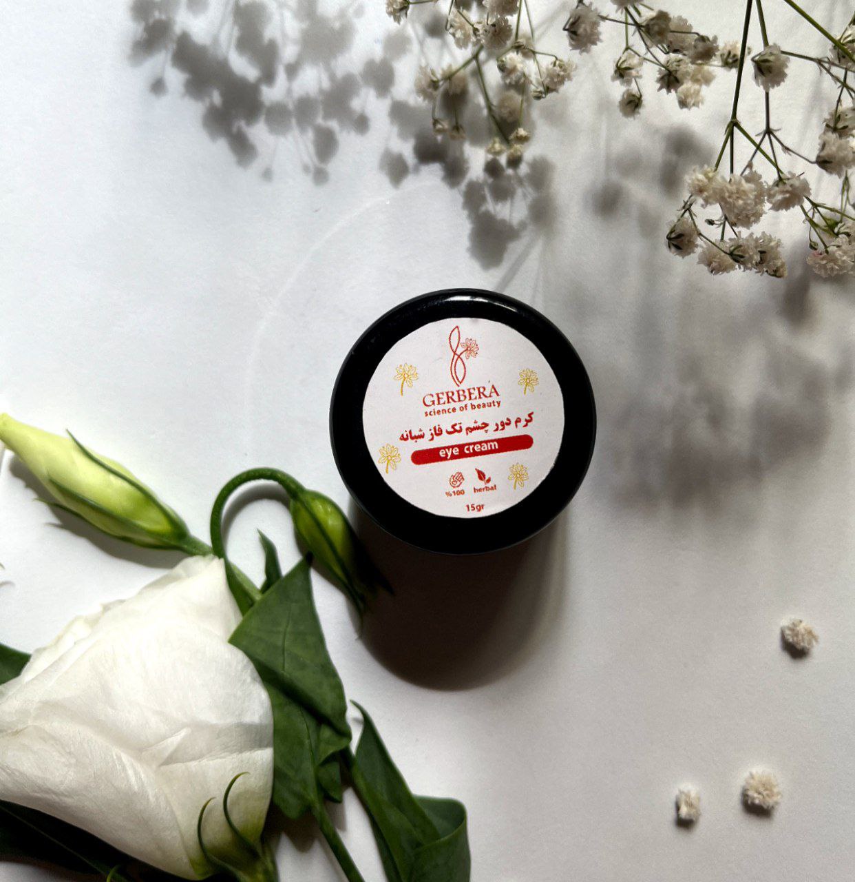 کرم دور چشم شبانه ژربرا مدل 150 | ضد چروک، ضد تیرگی و پف | تقویت کننده پوست::در دنیای پر استرس و محیطهای محیطی امروز، پوست نازک و نزدیک به چشم از هر یک دیگر از صورت، نیازمند مراقبت ویژه است. کرم دور چشم شبانه ، محصول کاملاً طبیعی و دستچینشده از بهترین روغنها و ویتامینهاست که با فرمولاسیون به فرد، برای تغذیه، ترمیم و جوانسازی پوست اطراف چشم در طول شب طراحی میشود.