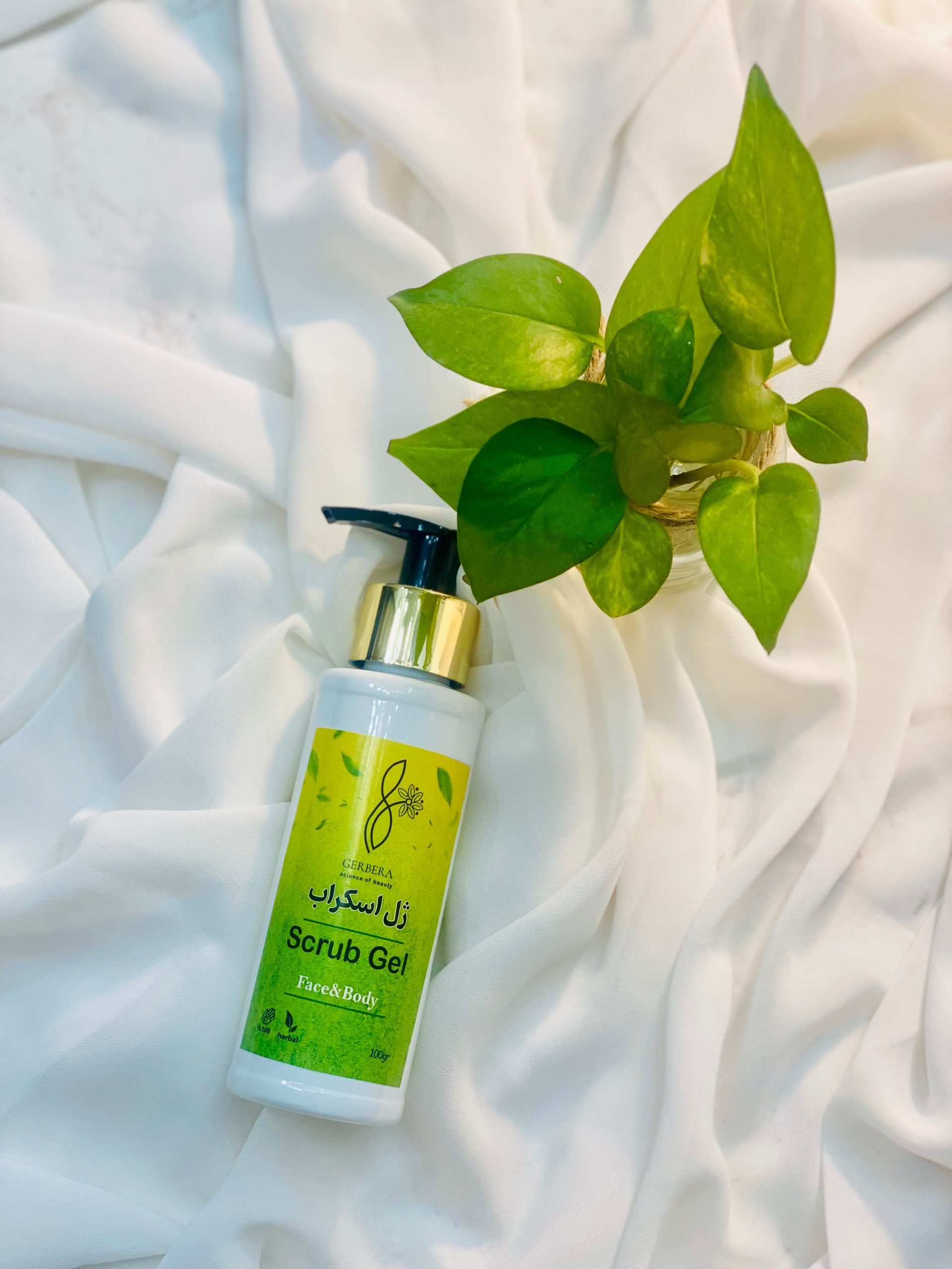 ژل اسکراب روشن کننده گیاهی ژربرا | لایهبردار طبیعی برای زیر بغل، بدن و صورت